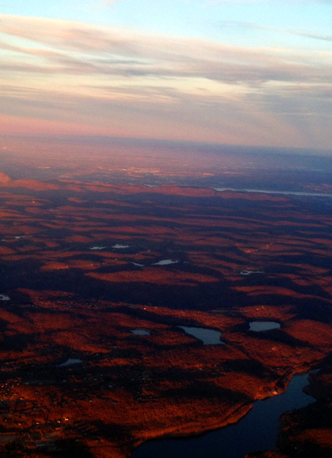 On the bright side, I got to watch the sun rise from one of the best vantage points ever — the sky. The sun infuses the bare, brown trees with a hue that is so orange, it made them look like they were rusting.